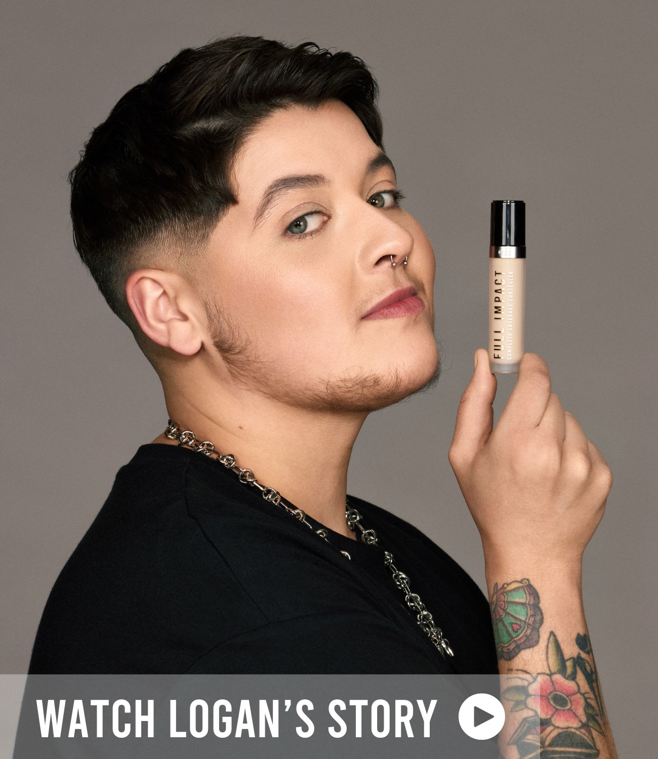 Logan wears shade L4 of Full Impact.